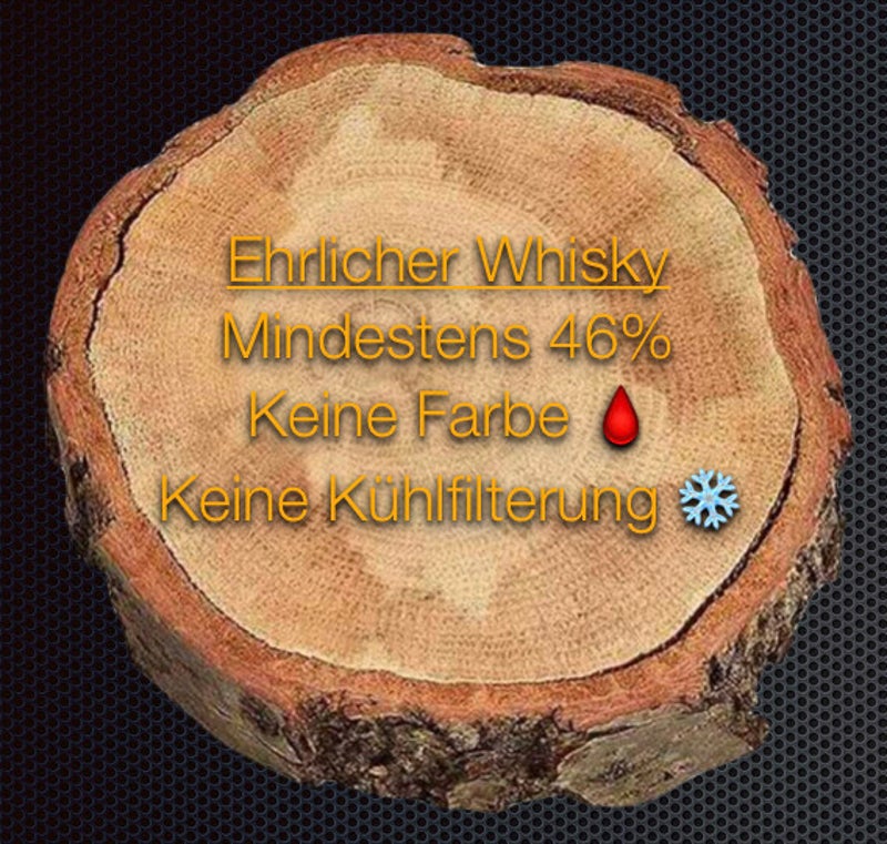Whiskies, die mindestens 46% ABV haben, nicht gefärbt wurden (natural colour) und auch keiner Kühlfilterung (non chill-filtered) unterzogen wurden, bekommen eine entsprechende Kennzeichnung als Grafik. Damit bezeichne ich sie als "ehrliche Whiskies". Unten ist eine Tabelle mit den Brennereien oder Abfüllern, die das (teilweise) so machen (bezogen auf die bereits verkosteten Whiskies). Die Zahl hinter dem Namen beinhaltet auch schon Whiskies, die noch nicht von mir abschließend veröffentlicht, aber schon bewertet wurden.