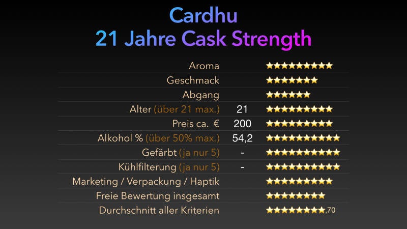Das volle Programm: Alt, gut, hochprozentig. Auf einer Messe habe ich den gleich zweimal bestellt. Im Original und dann später noch mit etwas Wasser trinkbar gemacht. Hier sieht man, was ein alter Whisky bieten kann. Leider sehr teuer und nicht mehr so leicht zu bekommen. Danke für die Erfahrung. 🛢️💦💰